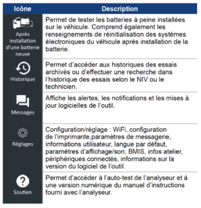 Icônes du menu principal