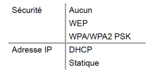 Une liste des réseaux sans fil détectés s’affiche avec • à côté du réseau sélectionné.