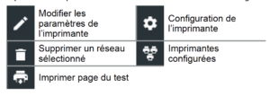 La fonction Configuration de l’imprimante permet de détecter et d’afficher la liste des imprimantes connectées et disponibles sur les réseaux WiFi et Bluetooth.