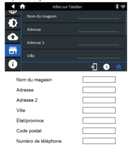 Utilisez le clavier à l’écran pour entrer le nom, l’adresse et le numéro de téléphone du magasin.