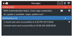 The Messages function displays alerts and notifications for upcoming tests and activities. This includes scheduled testing as well as tool software updates and maintenance opportunities.